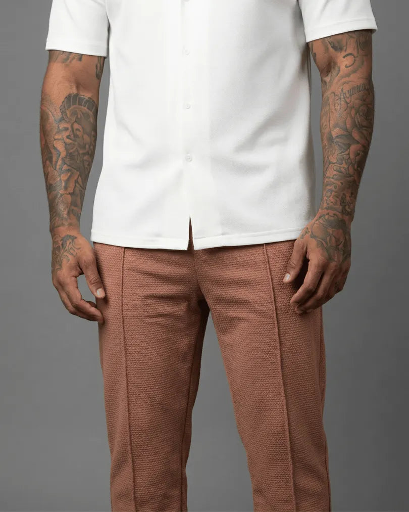 No. Aunque la tela se siente premium y tiene cuerpo, la textura tipo galleta permite que el aire circule. Es perfecto para clima tropical colombiano.